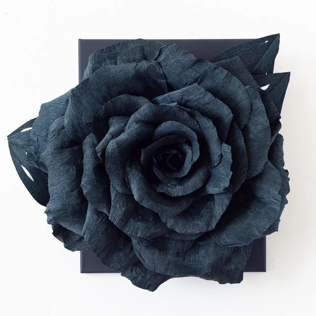 Crafted from deep, shadowy crepe paper, this black beauty looks like it bloomed straight out of a haunted castle garden.